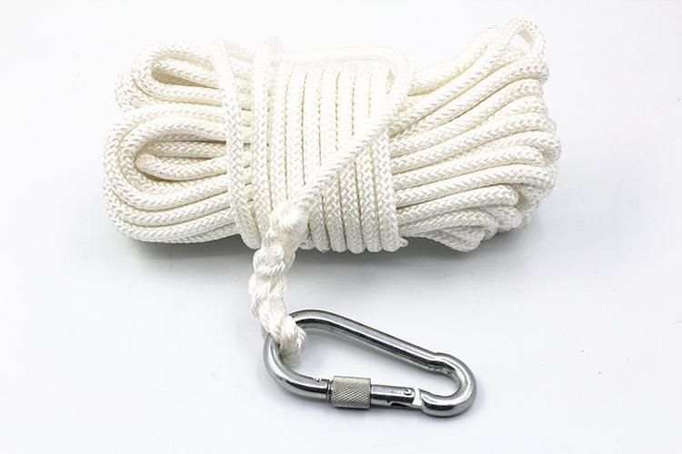 安全繩使用前必須做一次檢查,發(fā)現(xiàn)破損停止使用,配戴時活動卡子系緊,不可接觸明火和化學物品。 繩經(jīng)常保持清潔,用完后妥善存放好,弄臟后可用溫水及肥皂水清洗在蔭涼處晾干,不可用熱水浸泡或日曬火燒。 使用一年后,要做全檢查,并抽出使用過的1%做拉力試驗,以各部件無破損或重大變形為合格(抽試過的不得再次使用)